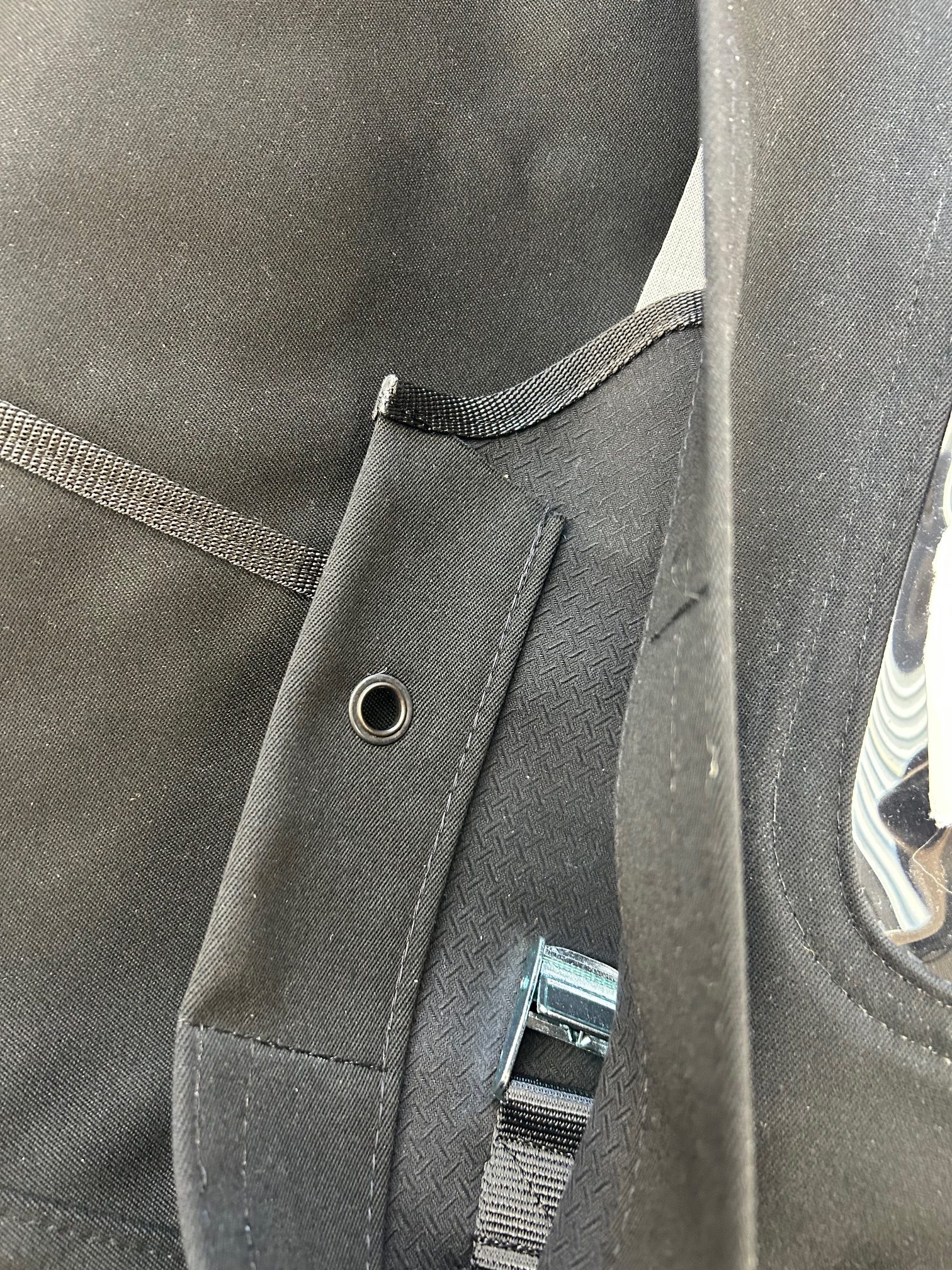 We always ask if your vehicle has a spare wheel carrier fitted so that we can make a small cut out in the back of the hood, in order to sit neatly over the bracket of the carrier. The hoods are finished with a D shaped cover to stop the zip slider making contact with the paint work.