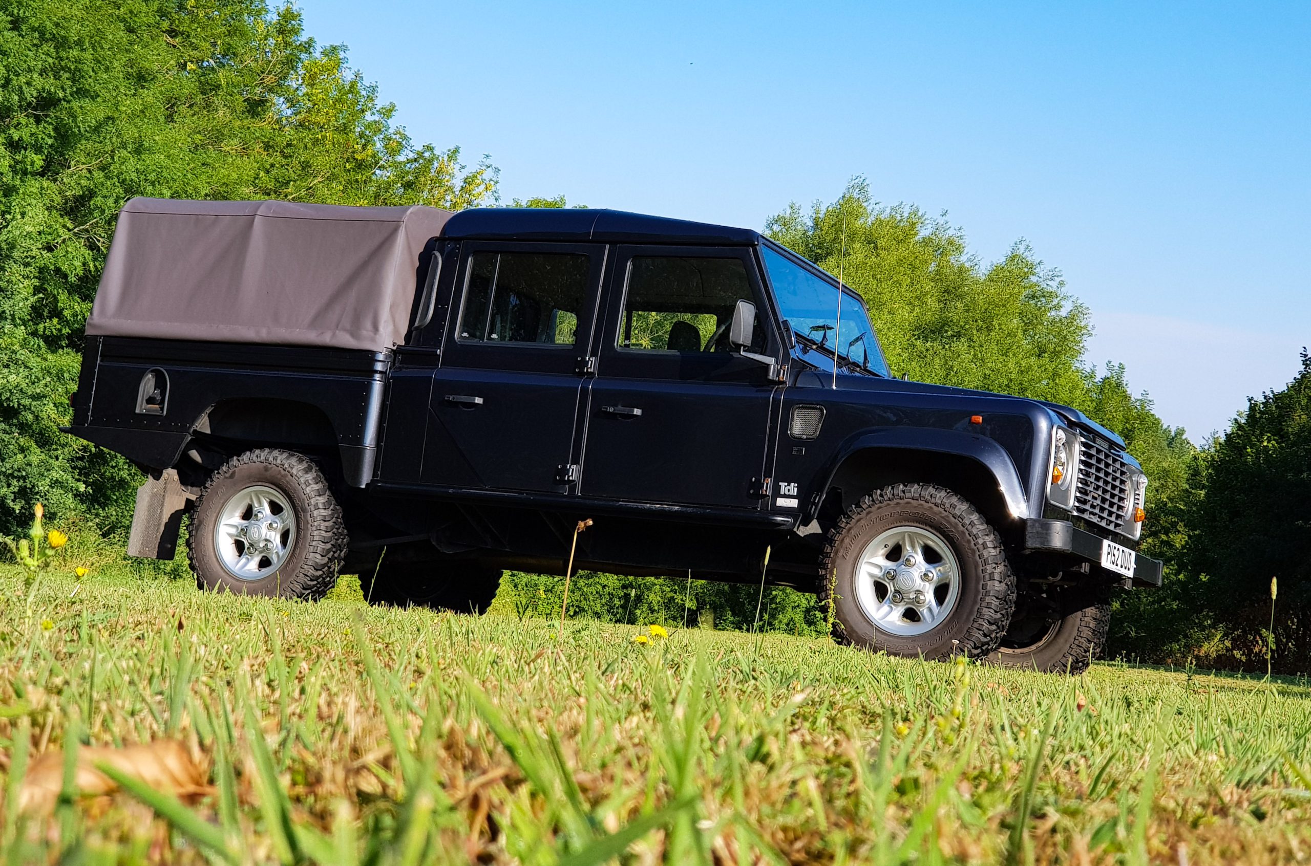 The 130 HCPU Double Cab Defender Hood fits from the back of the cab to the rear of the Land Rover. The 130 is for a 4 door Land Rover.